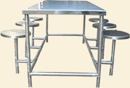 HSI 023 S.S Canteen dining table with 8 seater collapsible stool,Table